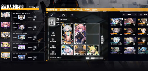 开荒推图小能手,飓风和杜兰德尔技能为群体输出,进行曲和随想曲都带有全体增益技能,外加一个刃齿的多段单体用来补伤害或应对BOSS场景,只要养成跟得上,一波流带走轻轻松松。