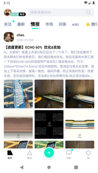 装备前线官方版是一款专门为数码爱好者打造的购物软件,这里为用户提供了大量的桌面潮流工具,你可以在这里购买各种各样的物品,如键盘,键盘支架,光轴增高架,显示器悬臂支架,桌垫,个性键等,使用不同的物品来装饰自己的桌面,并且,每隔一段时间你都可以在这里看到桌搭大赛,这里有很多用户在这里分享自己的桌面搭配,还会详细的介绍自己使用了哪些物品配件,如果看到喜欢的风格,可以直接根据介绍和图片来进行模仿。