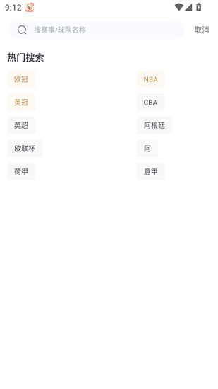 3、点击界面左上角的放大镜按钮,可以直接搜索你感兴趣的赛事或球队名称。