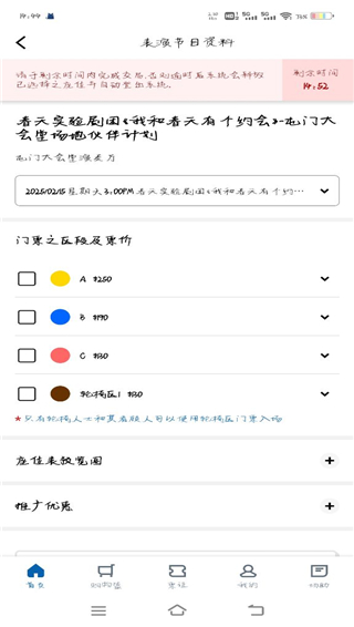 香港城市售票网app是一款非常便捷的手机线上购票软件,用户可以在这里查看各大影院,演出剧场等活动,软件将近期举办的演出活动分成了四部分,今日开售,今日节目,热卖中和即将开售,用户在这里找到想看的剧场之后就可以直接点击查看详细信息,比如节目的主板机构,举办地点,举办时间等,随后结合自身的情况选择节目的时间,然后,用户还需要在这里选择座位区段和具体的座位,不同区段的座位价格是不一样的,选择好区段之后就可以选择想坐的位置了,最后进行结账即可。