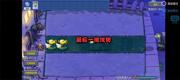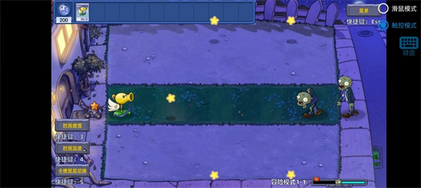 4、放置植物,让豌豆射手吐星星攻击僵尸。
