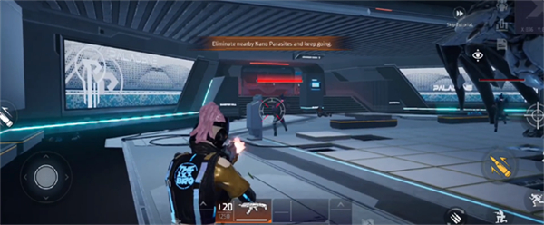 2、在赛博科技世界里自由探索,消灭敌人,完成任务。