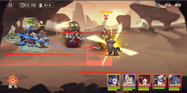 游戏支持多人联机,玩家可以与来自各地的对手进行实时对战,还有好玩的跨服征战、策略国战等玩法等你来挑战。在决胜之心手游,你能与不同战术风格的玩家战斗,还能尽情展现自己的实力和技术,指挥自己的英雄战队争夺领土和资源,感兴趣的朋友不要犹豫,快来下载试试吧!在它沸血打一半的时候,会出三匹马子,中间的马子先冲,然后是上下两匹。需要提前点集火选中队伍全员,中间马子要开始冲的时候就往最左上走,中马冲过队伍身位后,马上垂直往下走到中线位置,即可躲过这波马子的冲锋。蓝色箭头队伍走位,红色马子冲锋。