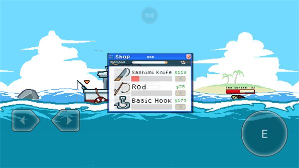 3、随着游戏进行,可以升级自己的装备,深入更广阔的海域,钓起更多种类更大的鱼。1、在软件学堂下载安装游戏,点击E按键,开始游戏。