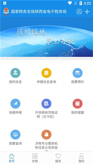 陕西税务app最新版是陕西省税务局专门面向陕西用户所推出的一款实用便民的线上税务办理服务软件应用,可适用于在陕西省从事涉税业务的公司和个人进行税务工作使用。通过该平台,我们可以随时进行缴税和申报业务,公司也可以在这里处理纳税申报表、文件和发票,线上办理,让用户不再跑来跑去,十分的省时高效。在这里,我们还可以随时查询最新税务政策,了解当地最新政策,防止遗漏信息,并支持税收法规库、办税指南、政策解读、办事统计等全面的税务服务,致力于带给您全方位的专业指导。