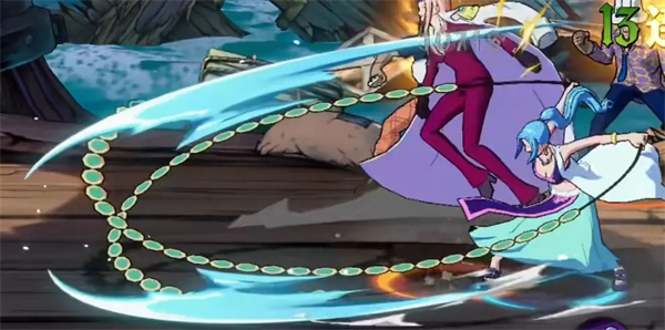 3、技能一:薇薇使用武器向前挥击,命中敌人并将其拉回,此技能附带抓取效果(技能的判定为纯x轴的短距离抓取攻击)技能释放后,可点击普攻追加一段攻击,若追加攻击命中敌人,可减少一秒技能冷却(释放技能追加普攻为薇薇的被动效果。在追击敌人时,技能追加的普攻可以打出较高的浮空,利于后续连段。