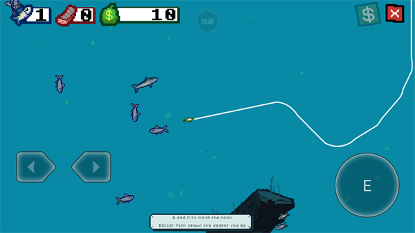 1、打开刚刚从本站下载的Scale the Depths手机版,走到船只最左侧,点击交互键钓鱼,控制鱼线方向。