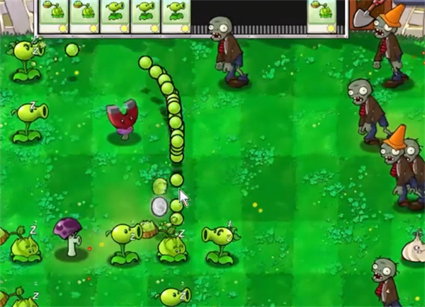 3、然后你就可以看到图中所示景象,满屏连线的豌豆也是很爽快的啦。