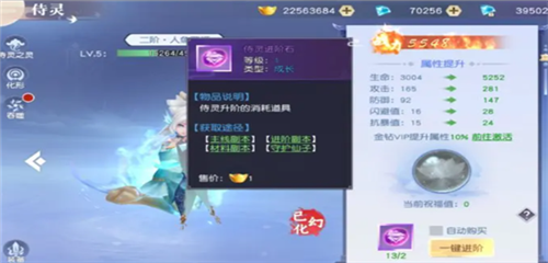 其一:通过“侍灵进阶石”进行进阶,祝福值越高升阶几率越大,“侍灵进阶石”可以通过侍灵副本、商城、BOSS等方式获得。
