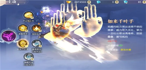 技能效果:地藏向前方挥出连绵不绝的佛掌,威力奇大无比,掌力一旦吐出便汹涌难绝,层层叠叠,莫可抵挡