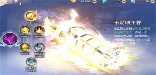 技能效果:在武器上加持诸明王之至尊-不动明王之力对目标周围造成3次150%基础伤害+150伤害。