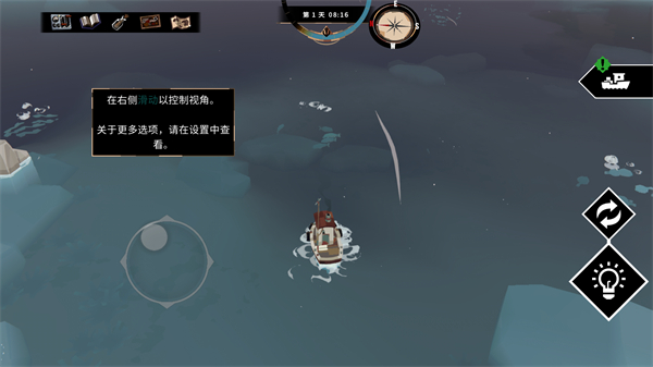4、渔帆暗涌游戏操作非常简单,左手控制行船方向,右手控制视角,前往钓鱼区域。