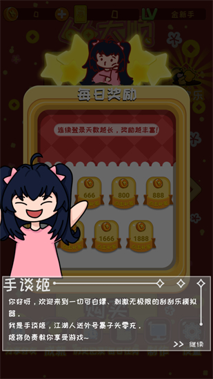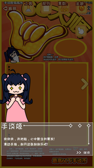 刮刮乐模拟器是一款由手谈姬开发的手绘画风休闲模拟类小游戏,它以轻松的方式模拟了现实中的刮刮乐彩票游戏。进入游戏,玩家首先会看到一只手谈姬,她会教你如何刮卡,玩法非常简单,只需要不断地刮开卡片,找到中奖图案即可,简单直接又有趣。