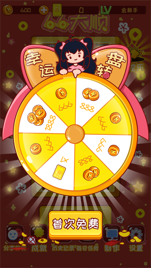 3、先来幸运转盘试试今天的手气吧,首次免费。