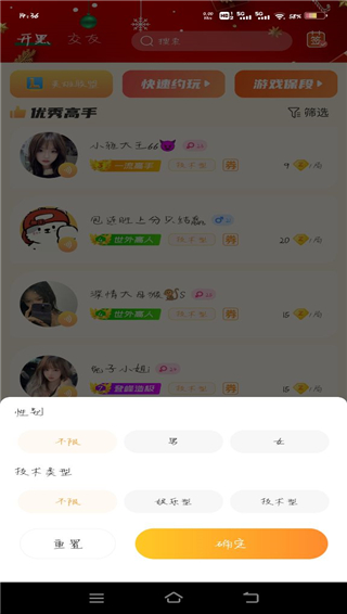 小鹿组队电竞陪玩app支持众多热门游戏,如英雄联盟,王者荣耀,和平精英,绝地求生,CSGO,光遇等,用户选择游戏之后就会自动进行筛选符合条件的陪玩,并且,这里有两种类型的陪玩,娱乐陪玩和技术陪玩,娱乐陪玩偏向于聊天,为用户提供情绪价值,为技术陪玩可以带你上分,用户可以根据自己的需求来选择。