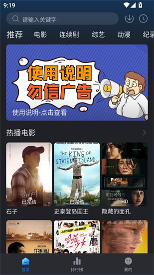 2、软件的首页有许多热播影视剧推荐,点击即可直接观看。
