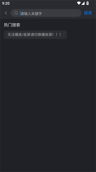 3、用户也可以直接在软件的顶部搜索栏直接输入关键字,点击搜索想看的剧。无法播放或投屏时,请切换播放源。