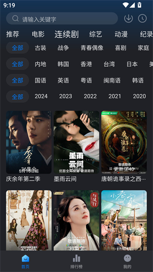 2、选择连续剧,筛选视频内容分类、地区分类、年份和电视剧的语言,找到想看的视频。