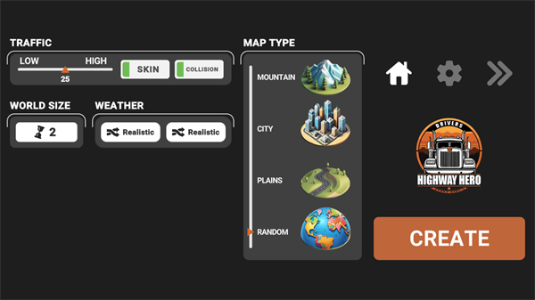 3、然后选择【MAP TYPE】地图场景,点击【CREATE】创建游戏。