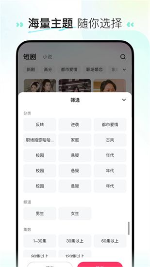 2、点击下拉按钮筛选分类,用户可以快速地找到符合自己品味的短剧。