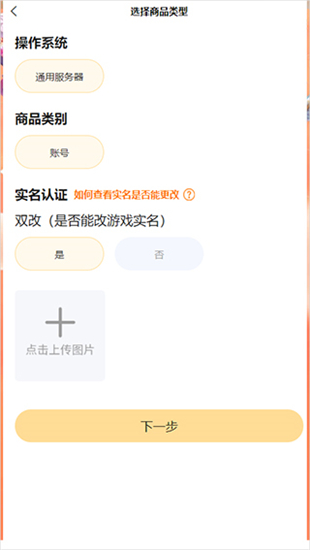 5、然后选择商品类型和您的游戏账号的具体参数。