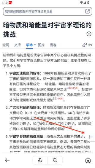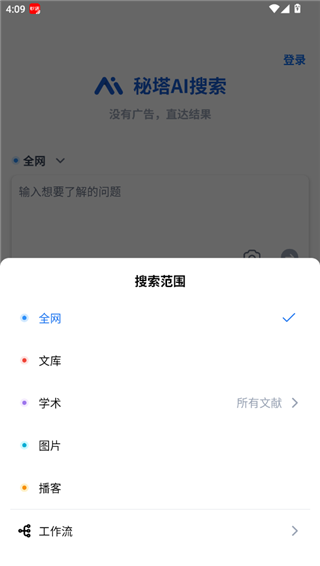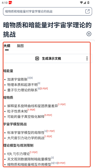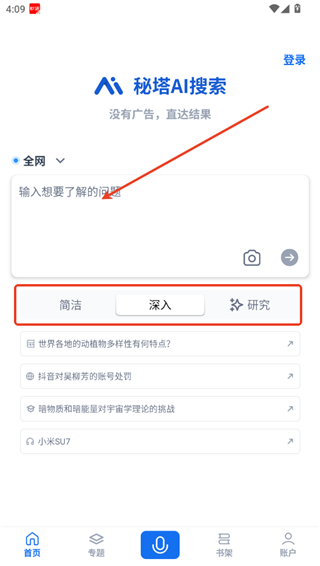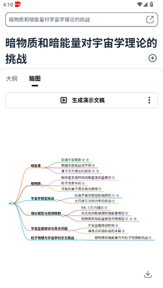 秘塔ai搜索引擎官方正版是一款功能强大的搜索引擎,依托于分布式计算框架和优化算法,能够快速的响应用户的查询,软件为用户提供了三种搜索模式,简洁,深入和研究,使用不同模式搜索出来的结果是不一样的,适用于不同的目标人群,并且,这里还有着多种搜索范围,如全网,文库,学术,图片等,用户在输入查询问题之后,软件就会根据用户选择的搜索模式和搜索范围来查找内容,让用户了解想要的内容,同时,这里还为用户带来了两种阅览模式,大纲和脑图,让你全方位了解内容,不仅如此,软件还支持一键生成演示文稿,只需要几秒钟,就可以根据内容生成对应的眼见PPT,非常的强大且实用。