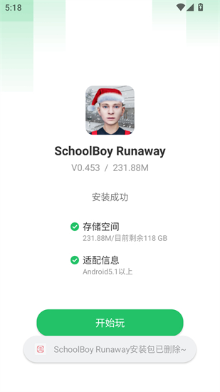 4、玩家需要寻找物品、拼图和解决谜题来计划逃生,这些谜题设计巧妙,富有挑战,考验玩家智力。1、首先,授权SchoolBoy Runaway安装器安装权限,点击安装。