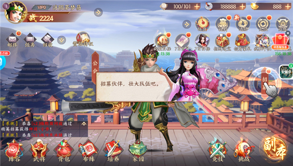 简单易上手的游戏操作,还为各位新手玩家提供了详细的引导教程,让大家都可以快速上手,轻松享受游戏乐趣。并且在游戏内海量海量的武器、法宝及其武将角色等待着主公们的召唤,玩家可自由搭配自己的策略战斗阵容,让你可以尽情感受超热血的战斗快感。