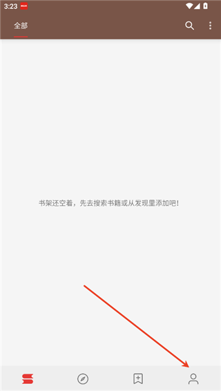 1、首先进入软件,书架中是没有书籍的,也无法进行搜索,只要导入书源之后才可以搜索小说,点击右下角的我的