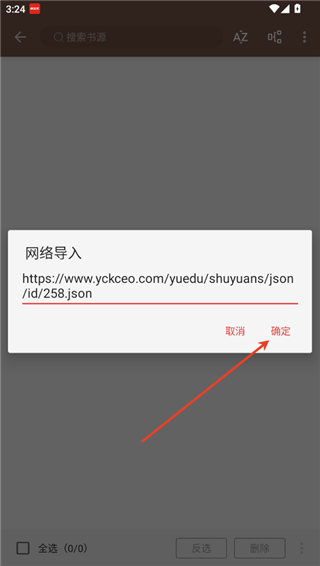 4、输入书源,随后点击确定,随后等待加载,你就可以看到相关的书源了,再一次点击确定就可以成功导入了,这时就可以顺利使用软件的所有功能了