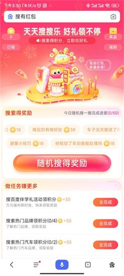 2、然后点击去搜索按钮,做完里面的任务后,就可以获得红包。