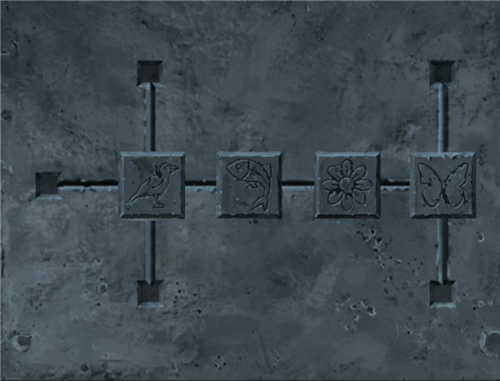 后退一下回到树林,还记得墓碑上也有个谜题吧,查看一下墓碑调整为鸟-鱼-花-蝴蝶,然后在谜题位置有个暗格拿到最后一个风铃,回到街道右转看婆婆,给婆婆左上角风铃挂上去,一阵微风吹过前面雾气淡了,点雾气可以继续前行。