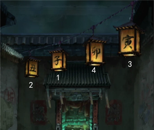 这里点雾气后有个小纸人开始给我们指路,根据前面书上线索,头顶灯笼是红色的时候,就顺着纸人指的方向走,头顶灯笼是绿色时候,就反着来,然后5次之后就走到了一条死路,熊孩子瞎指路是不是!先查看一下头顶灯笼,发现这不就是子丑寅卯吗!按照子丑寅卯的顺序依次点击灯笼就能开灯了。