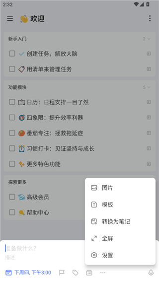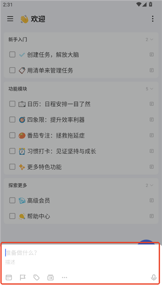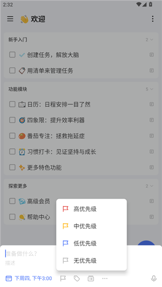 我们在日常生活的工作学习中,总是有很多的任务需要完成,但是任务很多就可能会导致遗漏,这无疑让人很头疼,因此,小编为大家带来了这款ticktick安卓版,这是一款非常强大的日程管理软件,用户可以在这里将所有需要做的事情记录下来,并设置好需要完成任务的时间,软件在设定的时间提醒用户,确保用户不会遗漏任何一个任务,有时我们会遇到任务时间重合的问题,这时可以给任务设置优先级,这里有四个优先级,高,中,低和无,软件会根据优先级来通知用户。