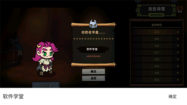 2、点击开始游戏,给角色命名,并调整自己的造型,可以选择具体的部位进行调整。