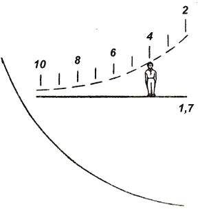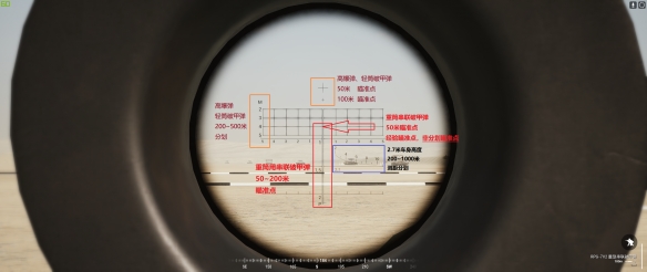 2、如下图所示测距,左下角红色虚线以及数字代表距离,2就是200m,4就是400m。水平直线边上的1.7代表测量的参照物是一米七高的人形目标。举例来说,瞄准镜视野中,一名站立敌军的身高正好等于从虚线垂直到直线的长度,那么对应的曲线刻度即是你与敌人的距离,也就是你归零该调到的距离。望远镜测距同理。以SVD为例,假设图中敌人身高一米七,此时你要想打中他,就要用400米的密位去打或者把归零归到400米再用瞄准镜正中间去打。