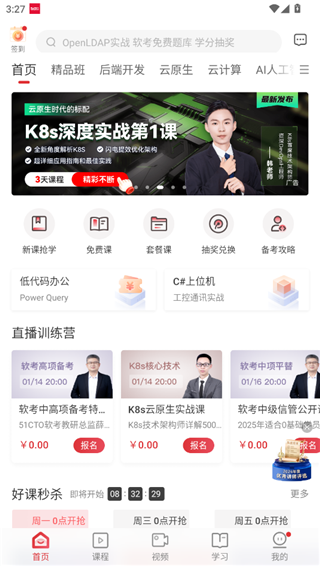 51cto手机版是一款专门为IT专业打造的慕课学习平台,这里为用户带来了大量的直播和课程,为了让用户更好的进行寻找,将这些直播与课程分成了不同的版块,如后端开发,云原生,云计算,AI人工智能,大数据,运维,数据库,网络技术,前端开发等,每一个版块中都有着大量的学习资源,用户可以根据自己的需要来寻找对应板块进行学习。软件中还有着各种各样的直播训练营,会有专业的老师通过直播来进行教学,全部都是免费的,你可以选择感兴趣的进行观看。