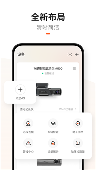 在70迈官方最新版app,想要连接到设备是非常简单的,只需要保持设备处于开启状态并打开设备自带的WiFi,随后使用手机连接WiFi并进入app就可以连接成功了,连接成功之后用户就可以在手机上看到记录仪上的画面了。
