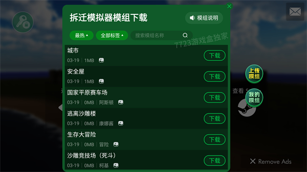 4、少有高画质模拟游戏,玩起来是种视觉享受。1、打开从软件学堂下载的拆迁模拟器狒狒同款,点击左侧绿色按钮,可以下载体验各种最新最热的模组。