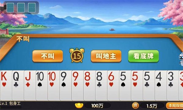 3、点击准备,然后开始叫地主、看底盘,注意不要超时选择了哦。