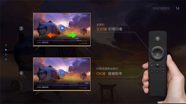 3、全屏时,左右键控制时移回看;时移进度条出现时,按OK键可以暂停直播。