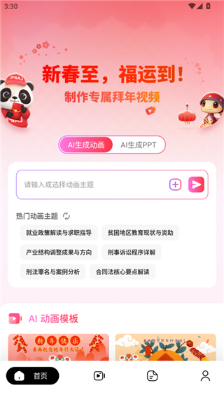 来画动画制作app是一款可以免费制作短视频的软件,这里为用户带来了大量的模板动画视频,你可以通过模板来制做出短视频,通过模块化的操作就可以将图文,视频,音乐等素材进行进行结合,轻轻松松做出想要的短视频,完美实现了用户可以随时随地制做短视频的要求,而且用时非常短,仅仅只需要五分钟就可以完成。