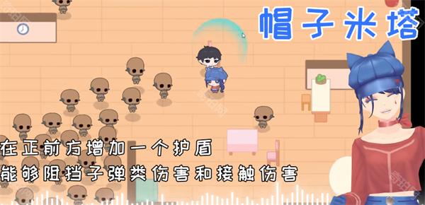 5、帽子米塔:在正前方增加一个护盾,能够阻挡子弹类的伤害和接触伤害。