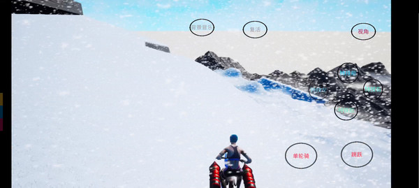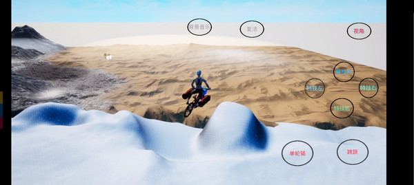 2、玩家可通过点击操作按钮的方式完成各种极限运动的动作,例如跳跃、单轮骑、特技前后左右等,还支持复活功能。