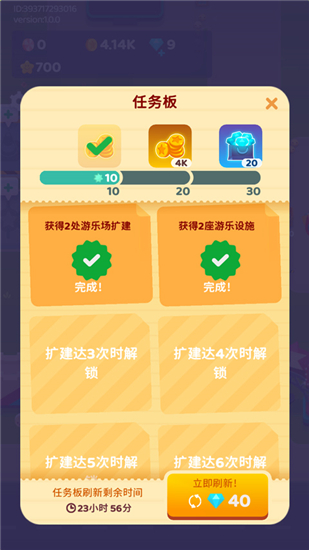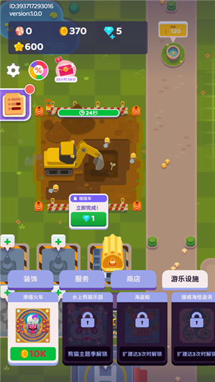 游戏中的金币还可以用来升级你的游乐设施,解锁更多场景道具。欢乐游戏城整体游戏玩法自由度高,没有任何玩法限制,只要你有足够的金币资源就可以随心所欲的进行建造,美味的餐厅、商店、吉祥物等等,你想要的都可以在这里实现,喜欢的朋友快来下载体验吧~