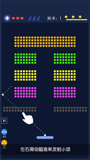 砖块破坏者中文版是一款极具趣味性的休闲益智类闯关小游戏。该游戏画面清新,玩法操作简单易上手,玩家只需轻轻滑动手指即可控制小球发射,击碎砖块,适合各个年龄段玩家体验。进入游戏为玩家提供了超多丰富的关卡挑战,每一个关卡的砖块布局和小球的移动速度都各不相同,玩家需要发动你的小脑筋,消灭所有砖块,解锁更多关卡。