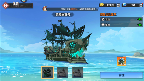 4、升级战船可以提升战力和增加属性,属性加成全队生效。
