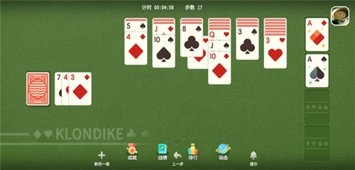 纸牌接龙游戏手机版是一款非常受欢迎的单人纸牌手游,是由电脑上纸牌游戏改编而来,玩法上并没有什么区别,不过在手机上更加的方便,只要你想玩就可以随时开始游戏。并且,游戏中还加入了一些新的功能,如成就,战绩,排行,动态等,在排行功能中会将所有的玩家战绩进行排行,战绩则是会记录你每一局的挑战数据等,让你可以看到自己的成绩和进步。而且最重要的是游戏中并没有广告或是VIP的存在,也没有各种各样的英雄活动来干扰玩家的游戏体验,让你可以享受到纯粹的娱乐。
