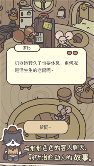 橡子屋官方正版是一款卡通风格的模拟经营类手游,采用的是2D漫画风格设计,玩家将会成为一个小动物,并在森林中开一家小饭店,你需要手机各种各样的食材来制作不同的食物,并将其出售给其他的小动物,以此来获得收益。每天都会有不同的顾客来消费,这些顾客的要求都不一样,你需要做的就是尽可能的满足对方的要求,顺利的完成订单,需要注意的是,在顾客用餐之后可能会出现各种各样的垃圾,你需要将这些垃圾清理掉,避免影响到其他的顾客用餐。