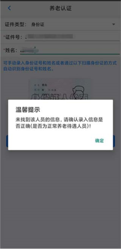 4、正常养老待遇人员可以直接认证,否则,会提示找不到人员信息。